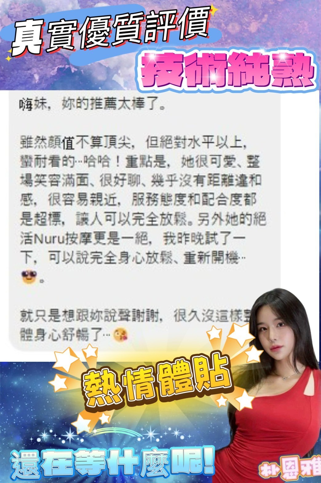 個性溫柔.服務起來很有女友感    Review by 張**