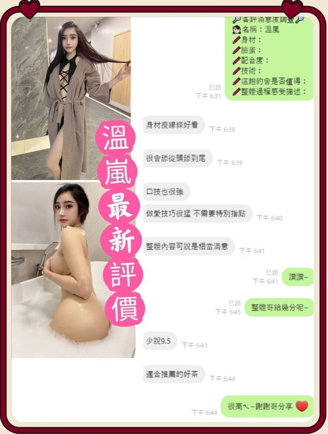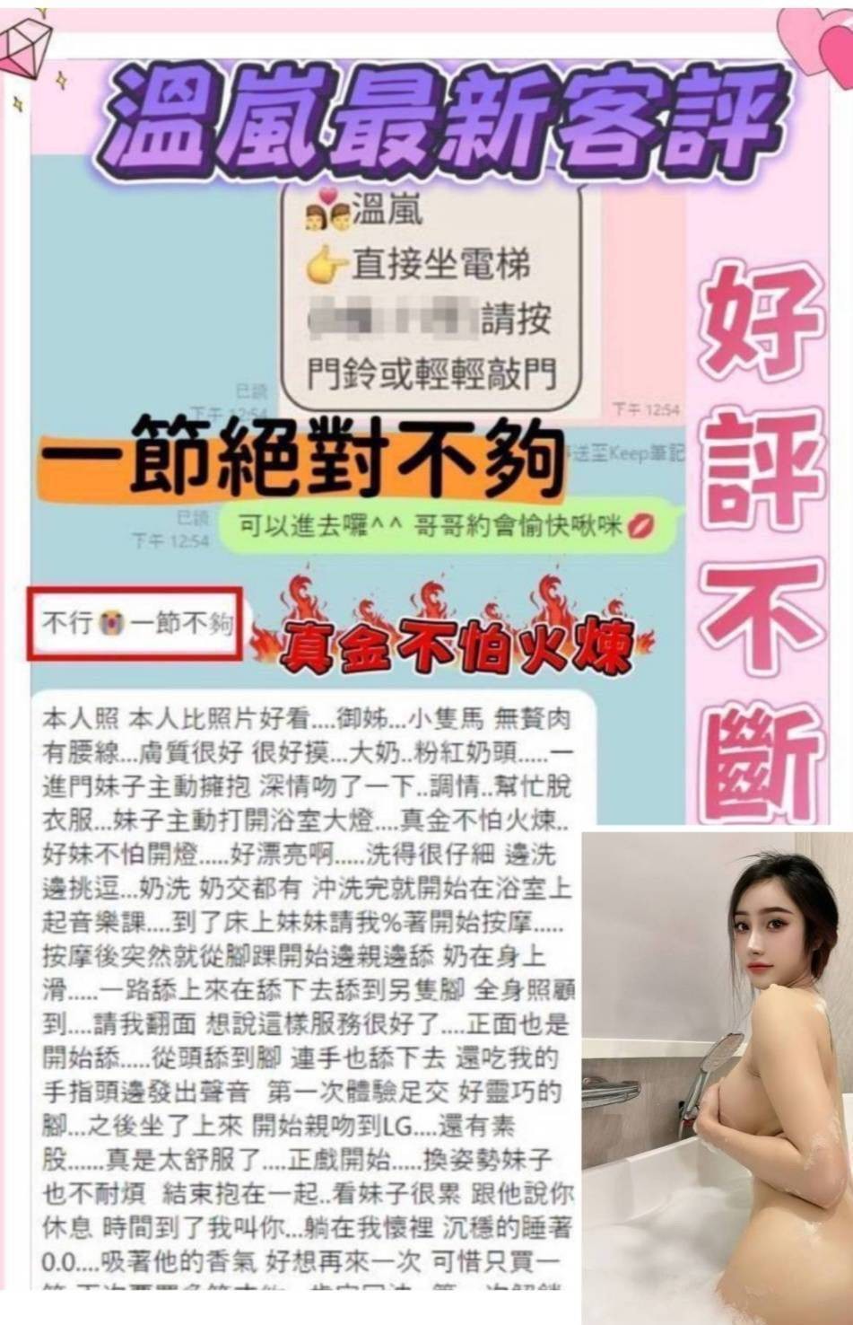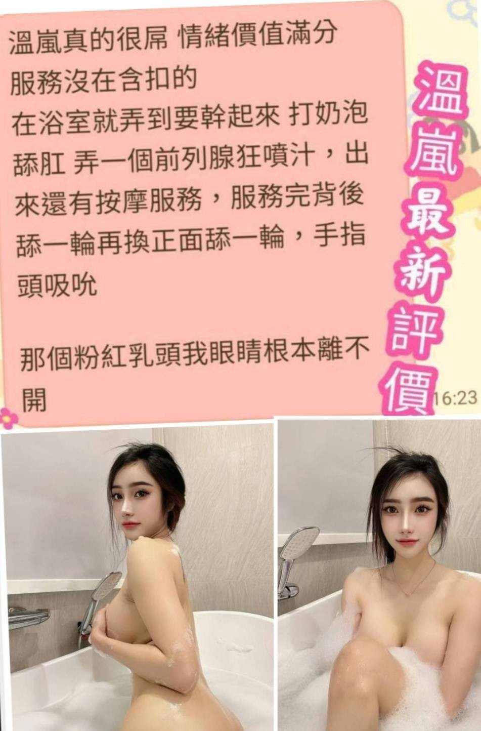 甜蜜共浴/殘廢澡/無套吹/舌吻/品鮑/69/按摩/乳交/奶炮/舔蛋/挑逗調情/舌尖舔滿全身/毒龍舔肛……