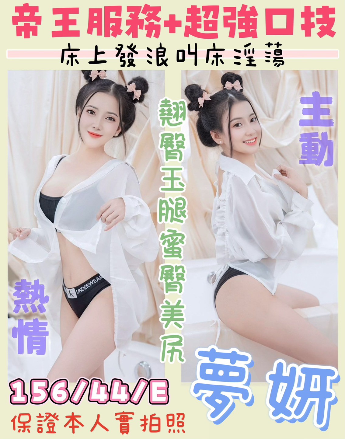 特色介紹👙翹臀玉腿好挑逗~超強服務秘密淫技,包準玩的超開心!
